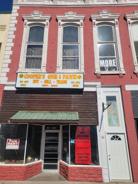 Nice commercial building for sale. Located on the square in Nevada Missouri. The building has finished upstairs. Upstairs can be rented for $600 per month. Each building on both sides has apartments. 1 bathroom consists of toilet and sink is located on the ground level along with extra storage rooms in the back. A garage door in the back opens to a large storage area giving renters easy access to unload and store goods. Taxes run $884 a year. Rent will be $800 each month on the lower floor and $600 on the apartment above.